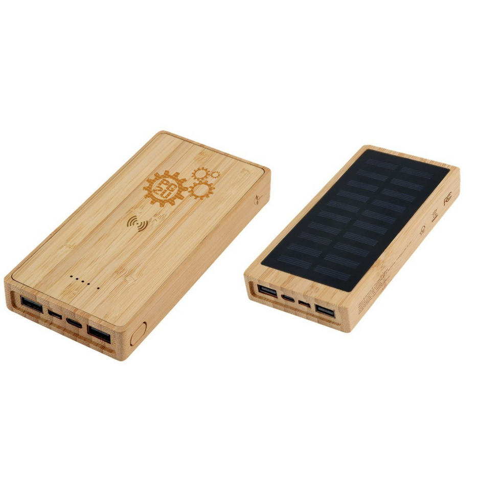 - 10,000mAh solar panel and Bamboo wireless power bank